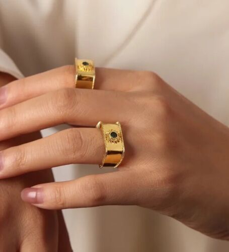 Gold Plated Copper With Zircon Green Stone Adjustable Ring