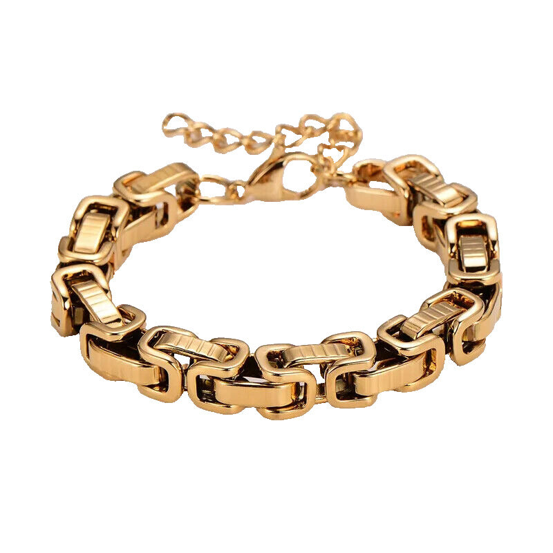 Gold Plated Stainless Steel Links Retro Style Chunky Chain Bracelet