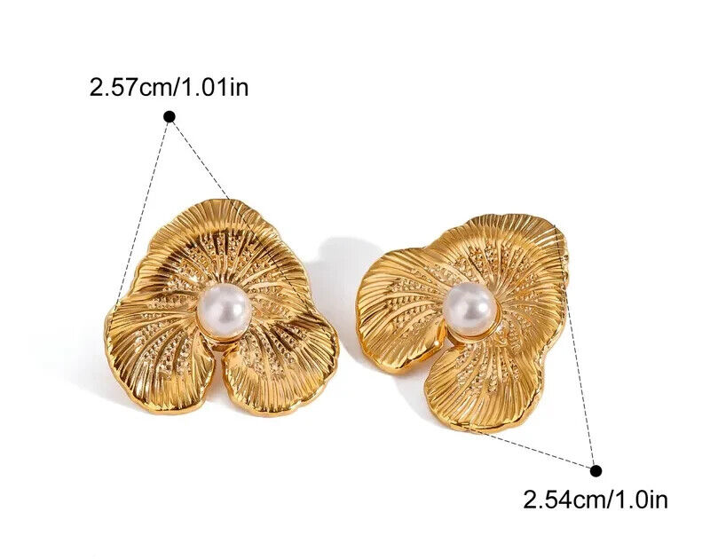 Gold Plated Stainless Steel Pearls Floral Petal Stud Earring