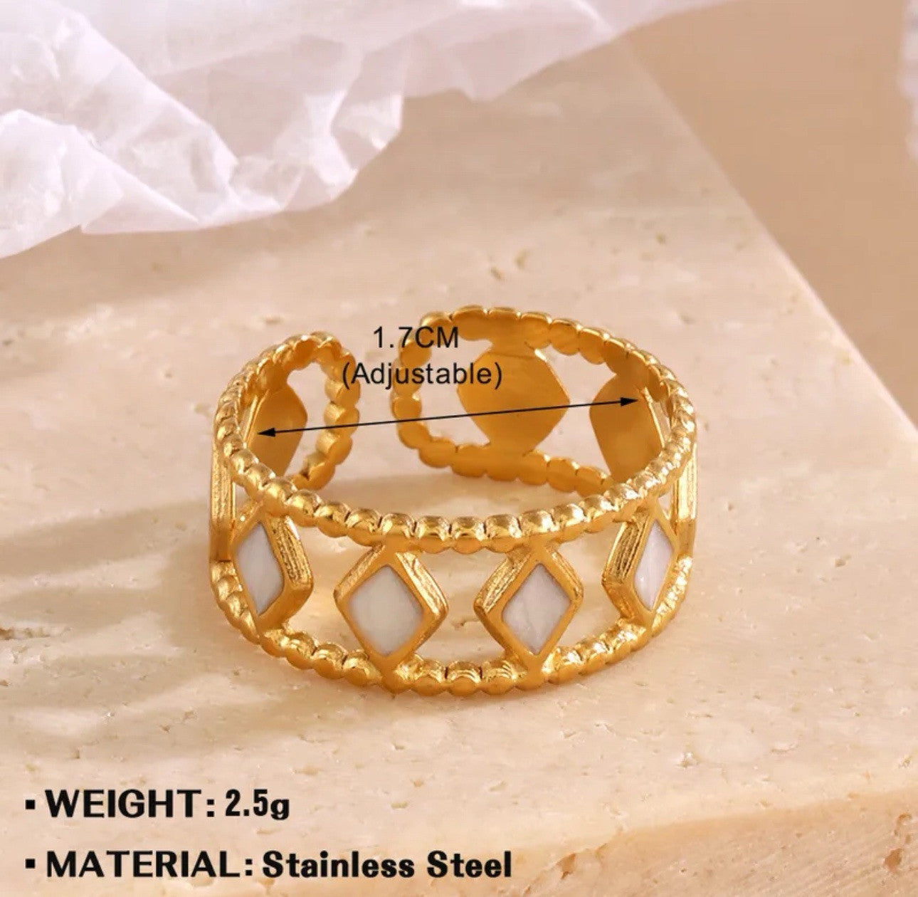 Gold White Stone Diamond Shapes Stainless Steel Adjustable Ring