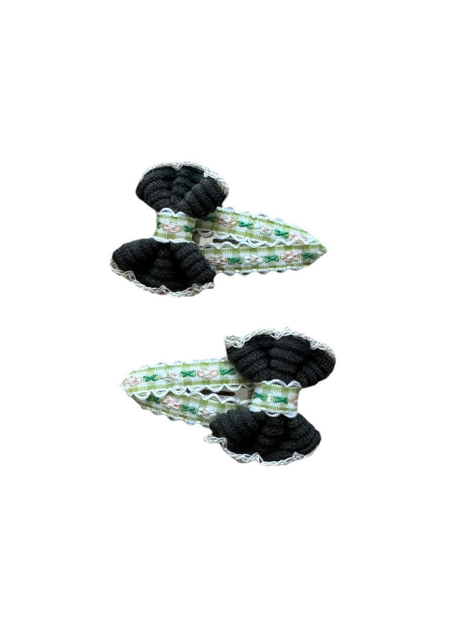 Green Bow Floral Crochet Fabric 2 Piece Hair Clip Set