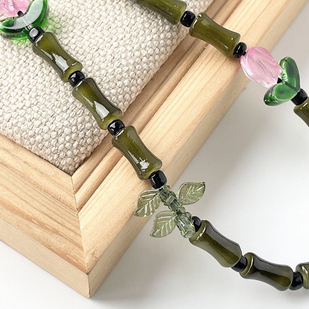 Green Pink Acrylic And Glass Bamboo Style Mobile Phone Chain/holder