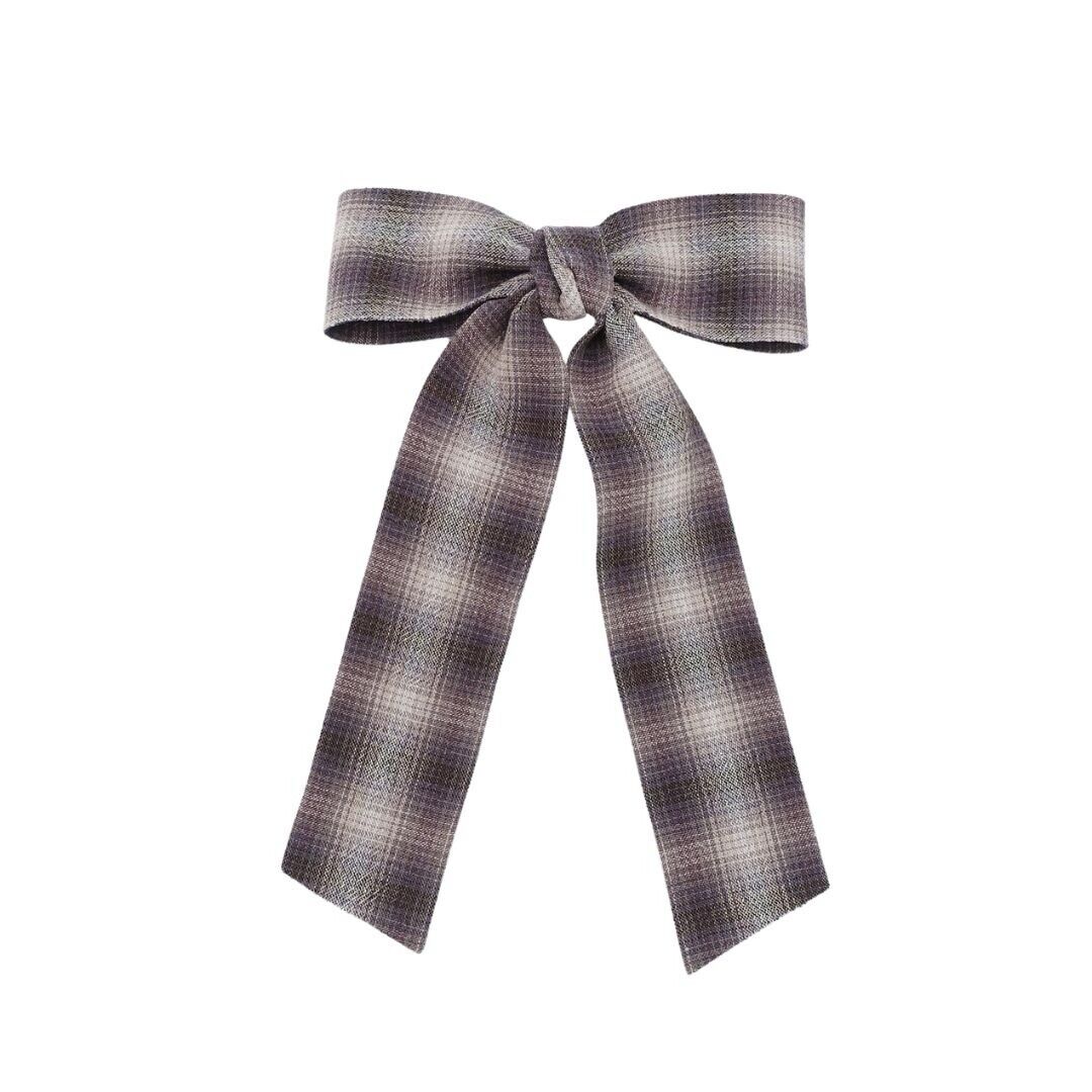 Grey/Black Plaid Fabric Long hair Barrette/ bow