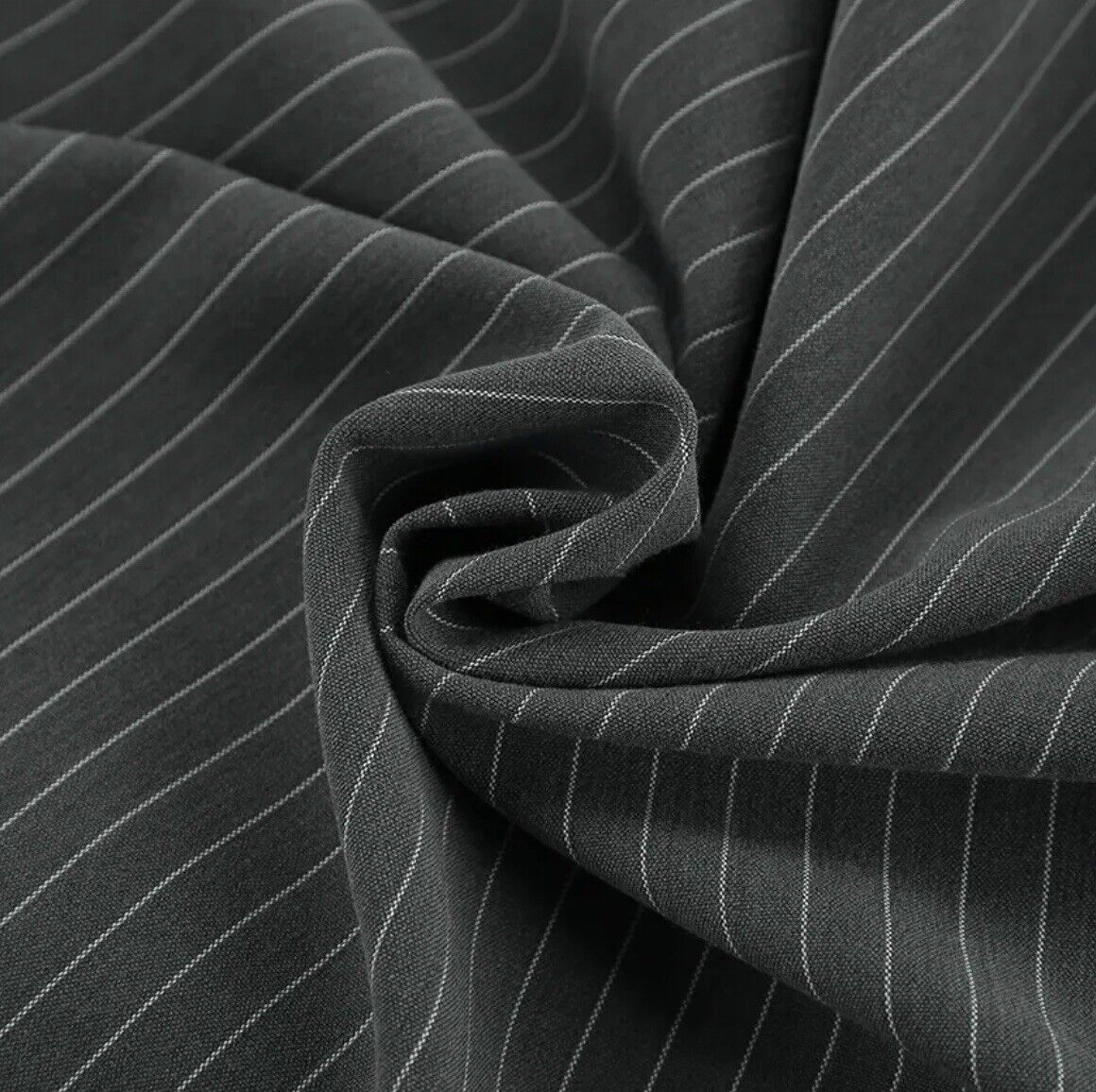 This two-piece outfit features a grey striped matching pleated skirt and long sleeves jacket in size S. The skirt and jacket are made of a blended fabric of 16% Rayon, 4% Spandex, and 80% Polyester. The outfit is perfect for various occasions, such as travel, party/cocktail, casual, formal, workwear, and business.