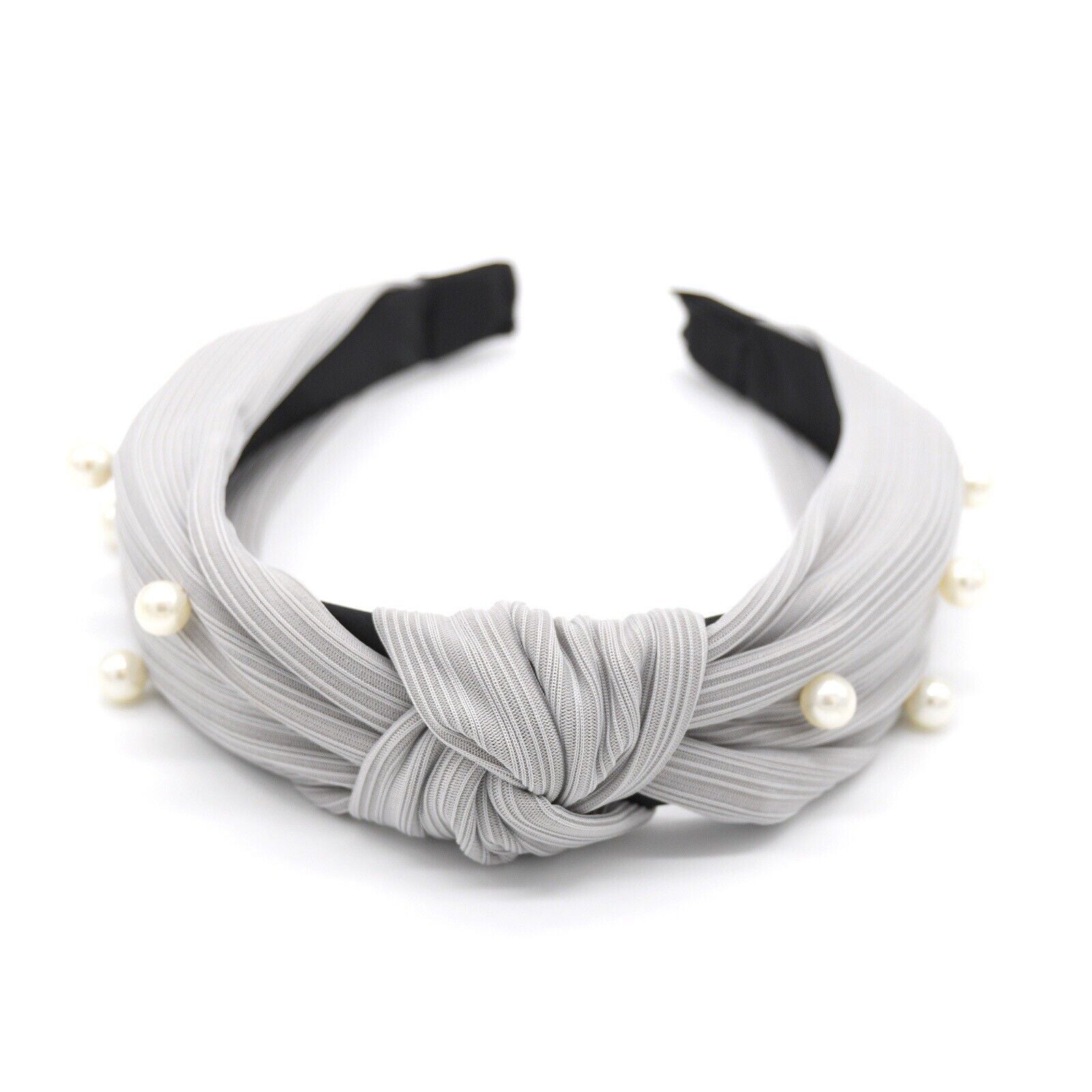 Grey Thinly Gathered Fabric With Lightly Beaded pearls knot headband