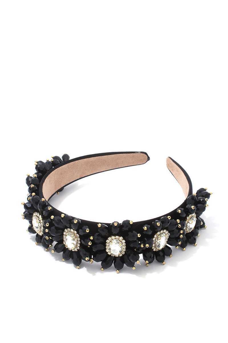 Black Beaded Handmade Floral Headband