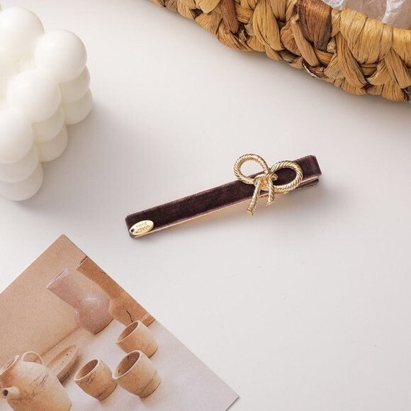 Lilac/ Purple velvet hair clip with gold plated metal bow