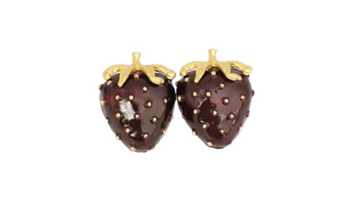 Matte Gold And Red Resin Strawberry Stud Earrings