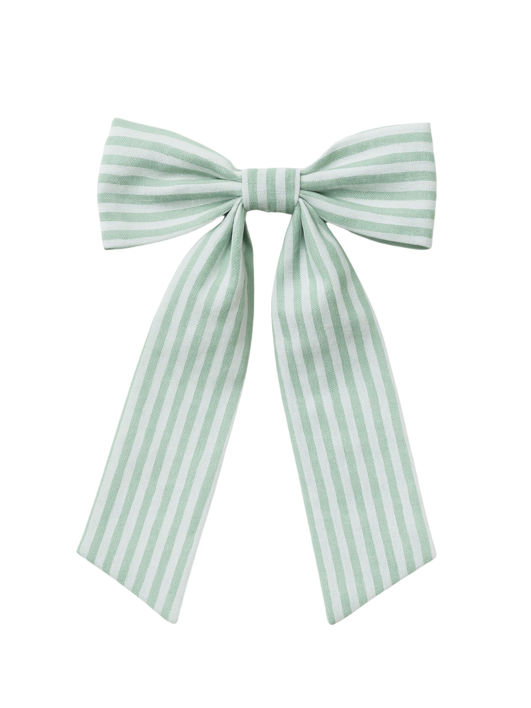 Mint Green And White Stripes Fabric Long Hair Bow Barrette
