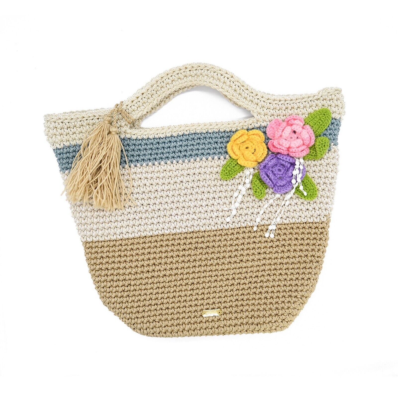Multicolor Handmade Crochet Floral Beach Bag With Tassels