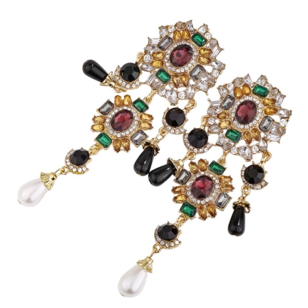 Multicolored Glass Beads And Pearls Chandelier Drop Earrings