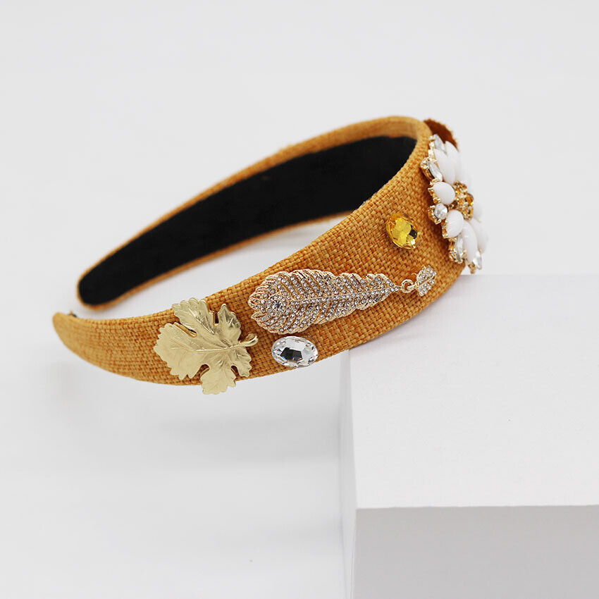 Mustard Floral Handmade Beaded Headband