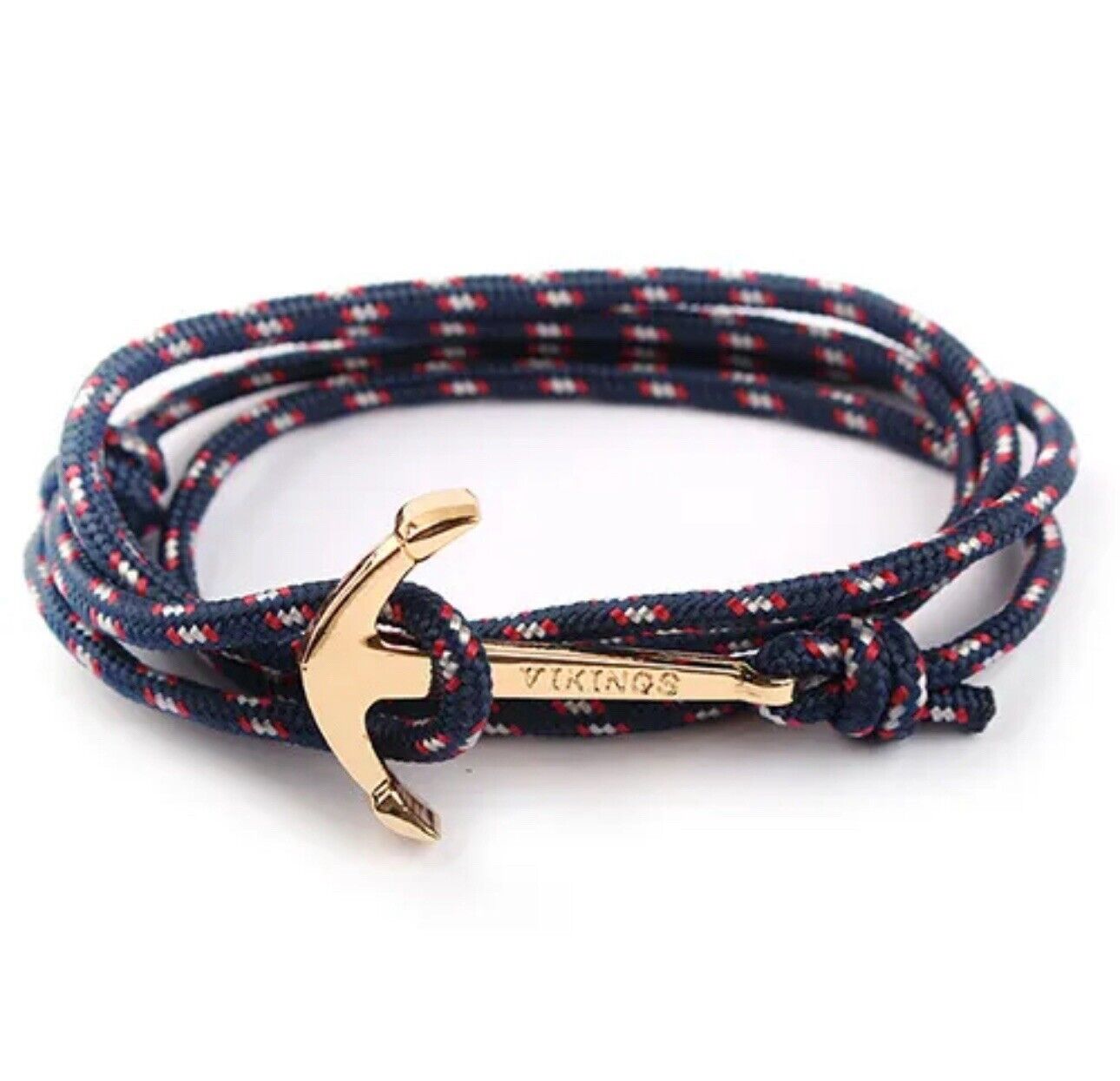 Navy Blue And Red Nylon Rope Unisex Viking Anchor Wrap Bracelet