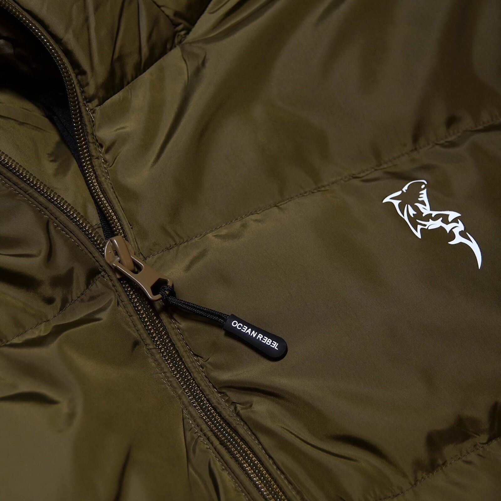 The oversized Puffer Jacket is one of our most functional yet earth-friendly jackets. Featuring plenty of exterior and interior pockets, an adjustable hood with cords, and grosgrain straps for hands-free carrying; embellished with our shark logo on the front chest, "X" logo patch on the sleeve, and "Ocean Rebel" on the back bottom center.