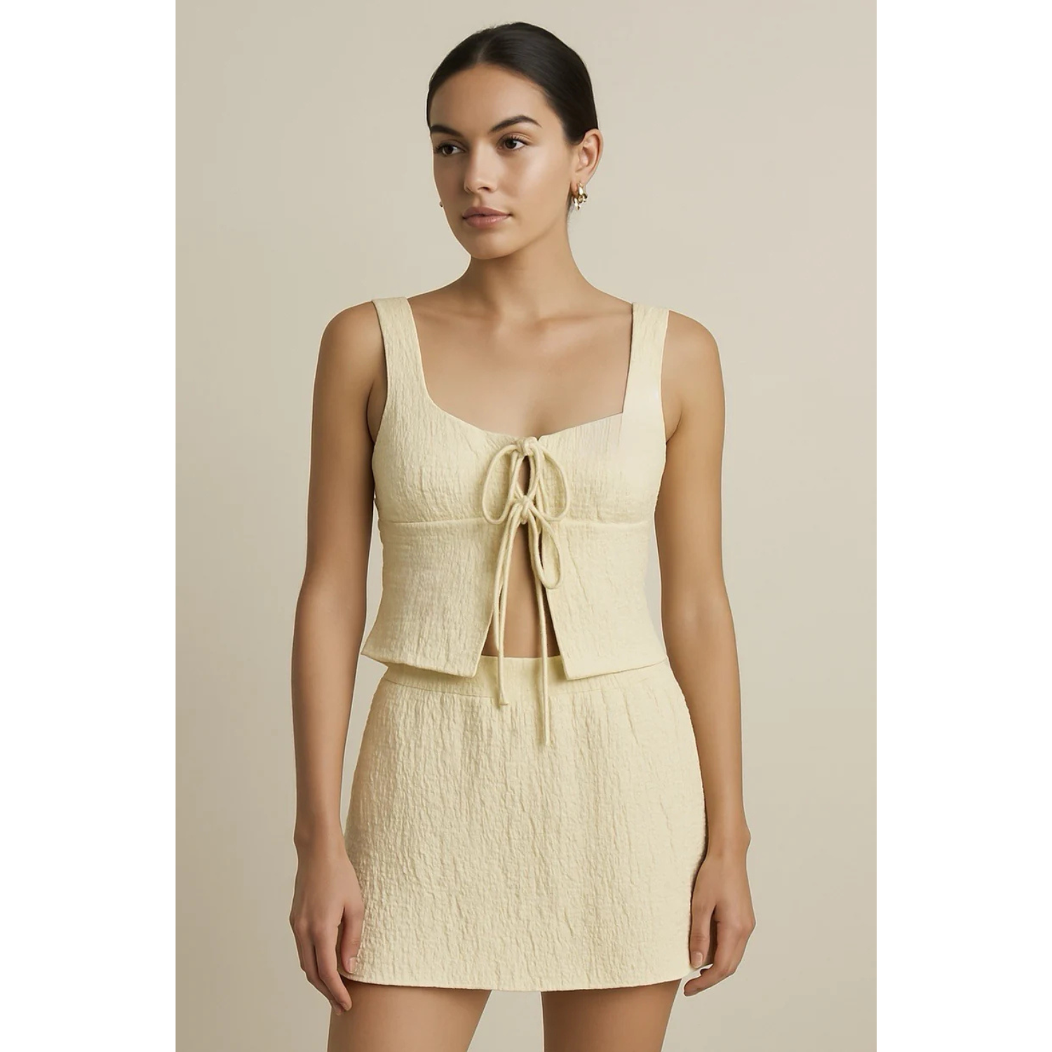 Pastel Yellow Floral Beaded Top And Matching Skirt Summer Set
