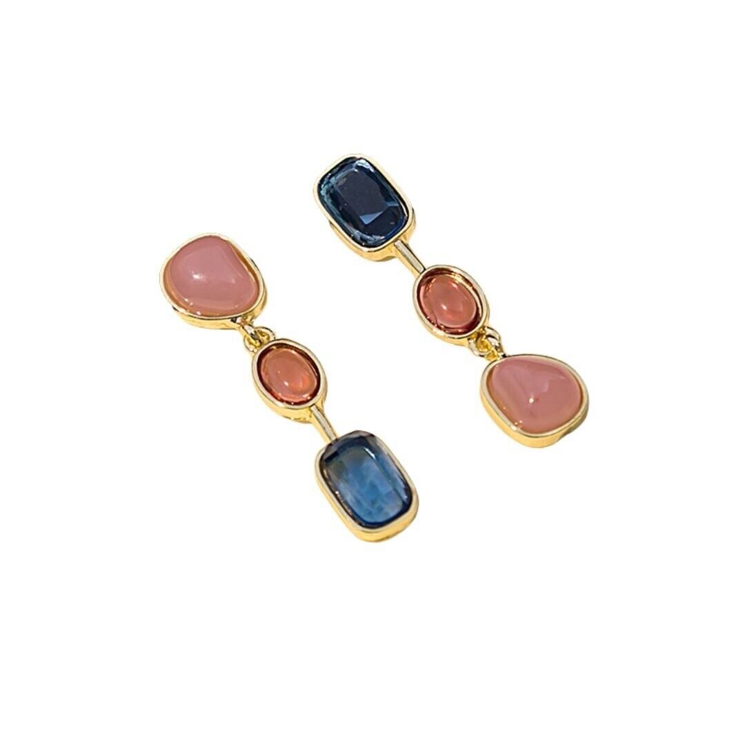 Pink And Blue Gemstones Drop Earrings