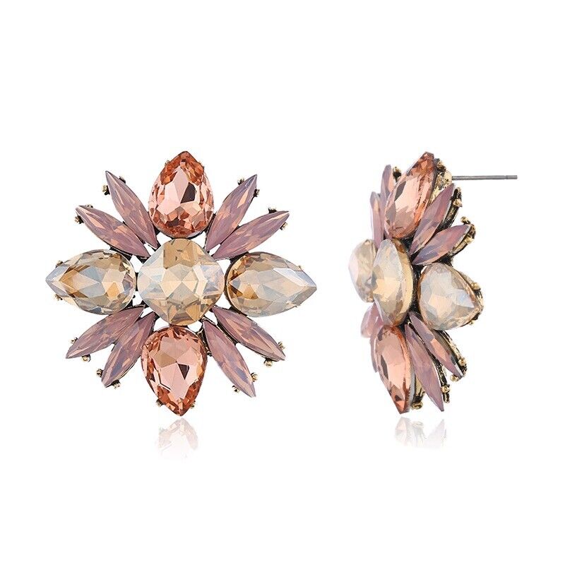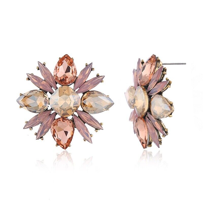 Pink Cubic Zirconia Stones Stud Flower Earring