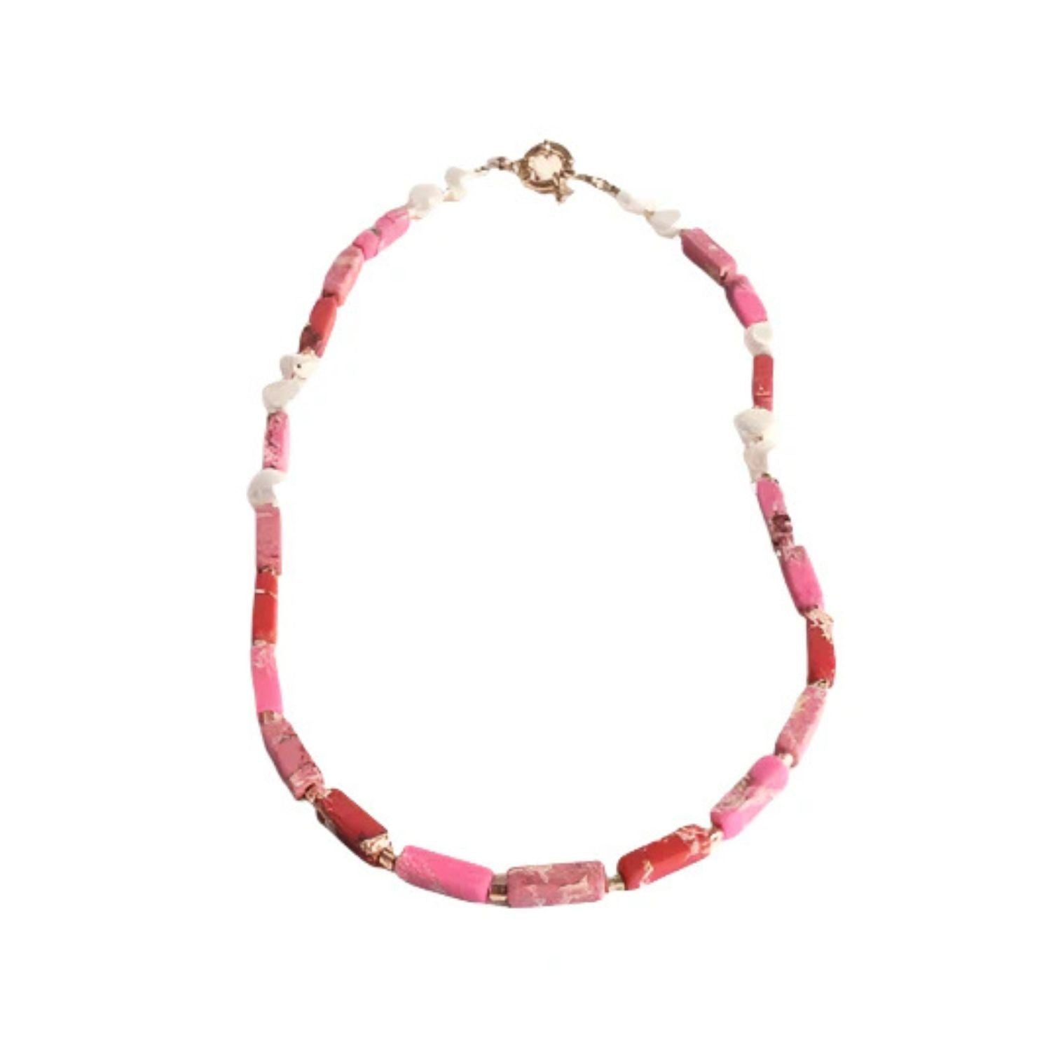 Pink Natural Stones And Precious Pearls With Gold Details Necklace