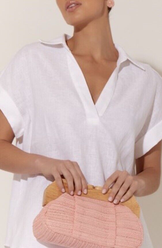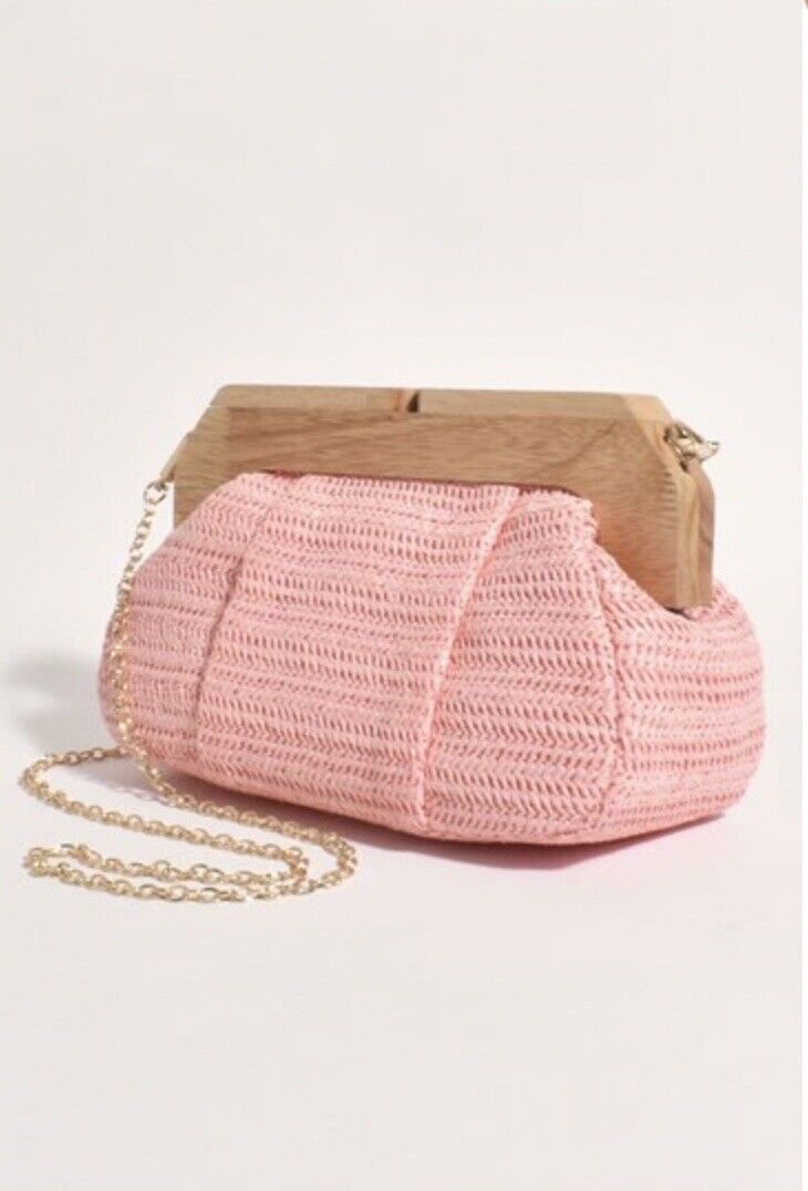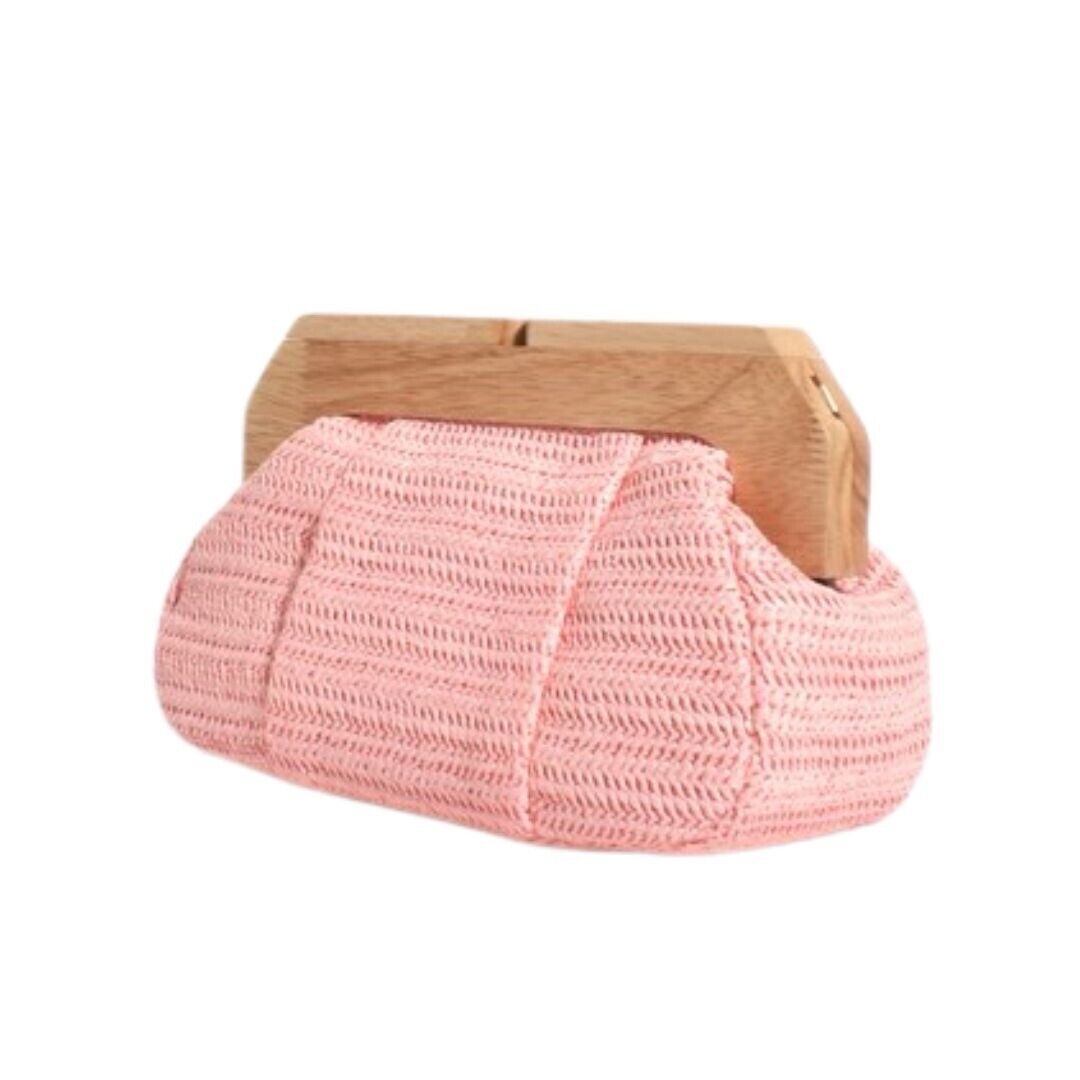 Pink Weaved And Timber Handle Frame Crossbody Clutch/purse