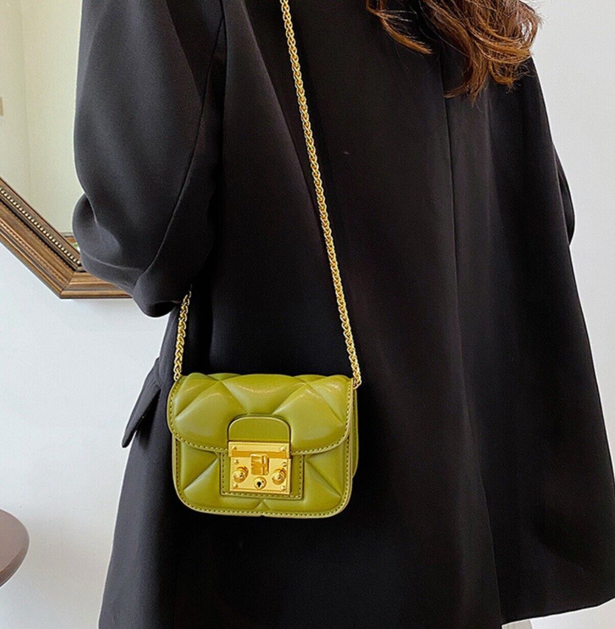 Sage Green Mini Faux Leather Quilted Crossbody Mini Bag