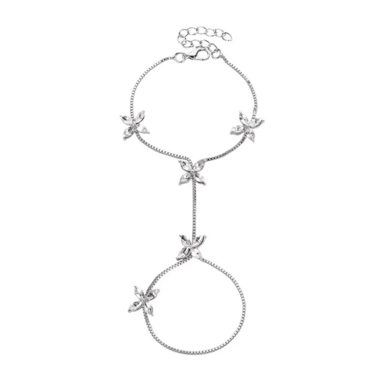 Silver Plated Floral Cubic Zirconia Finger Bracelet