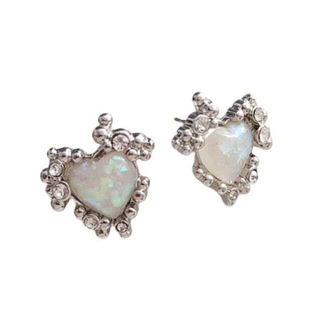Sterling Silver Heart Shape Opal Stone Stud Earring