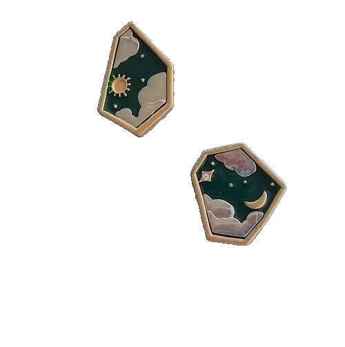 Sun And Moon Green Retro Style Acrylic Stud Earring