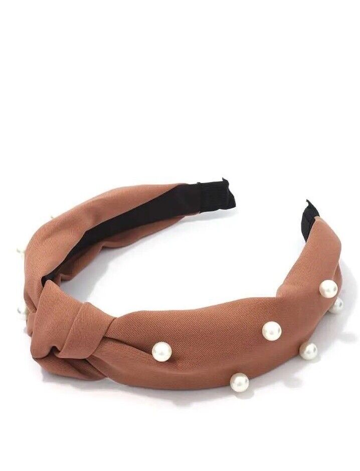 Tan/Brown Pearl knot headband/Hairband