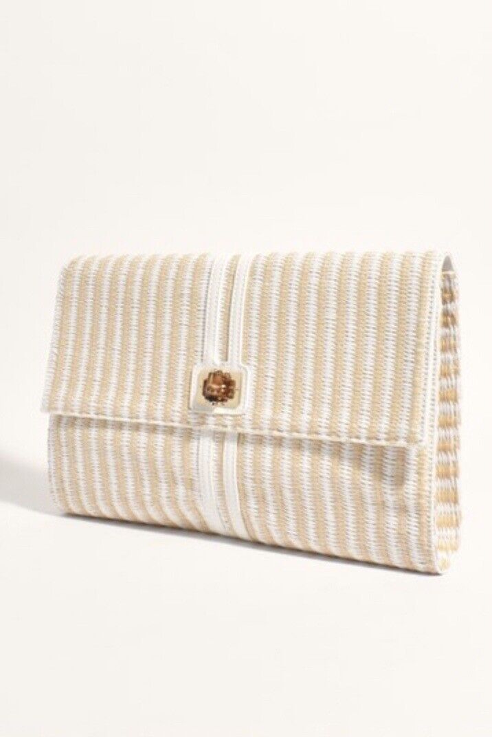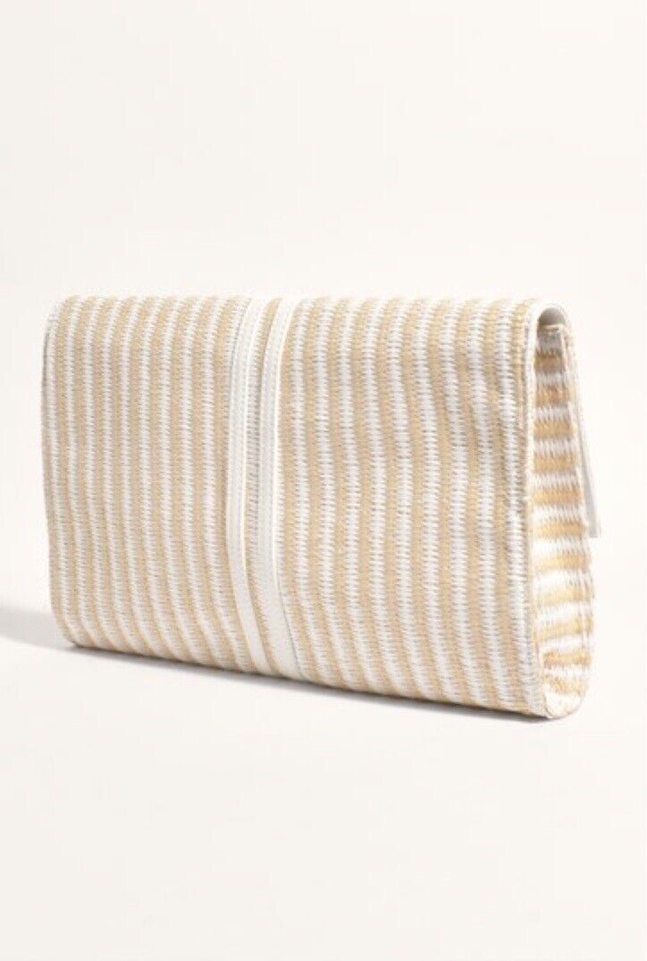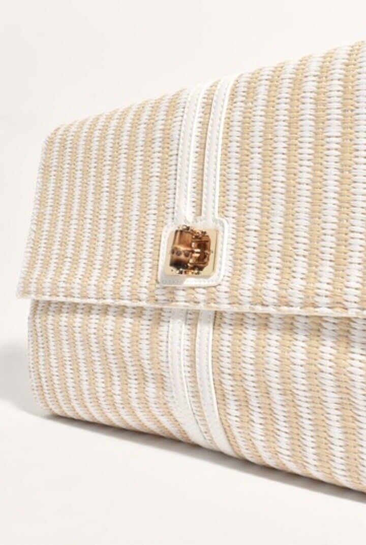 White And Beige Weaved Large Fold Over Clutch/purse
