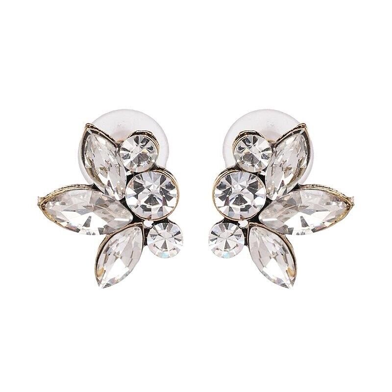 Add a touch of elegance to your look with these stunning White Cubic Zirconia Half Flower Stud Earrings. The earrings feature a beautiful half flower shape with a white cubic zirconia on each earring. The closure is a stud that securely fastens the earrings to your ear lobe.