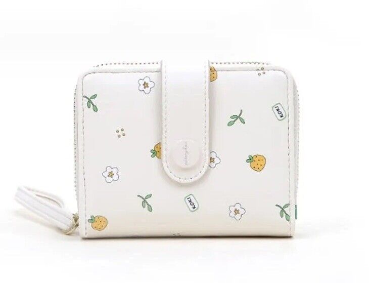 White Flower & Fruity Mini Zipper Wristlet Wallet