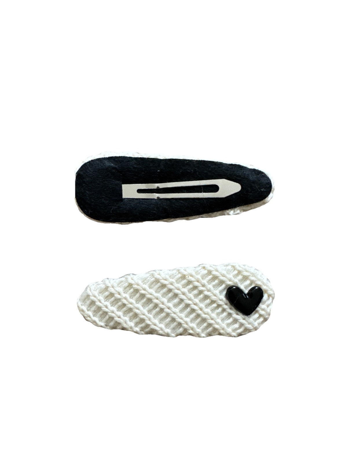 White Oval Heart Crochet Fabric 2 Piece Hair Clip Set