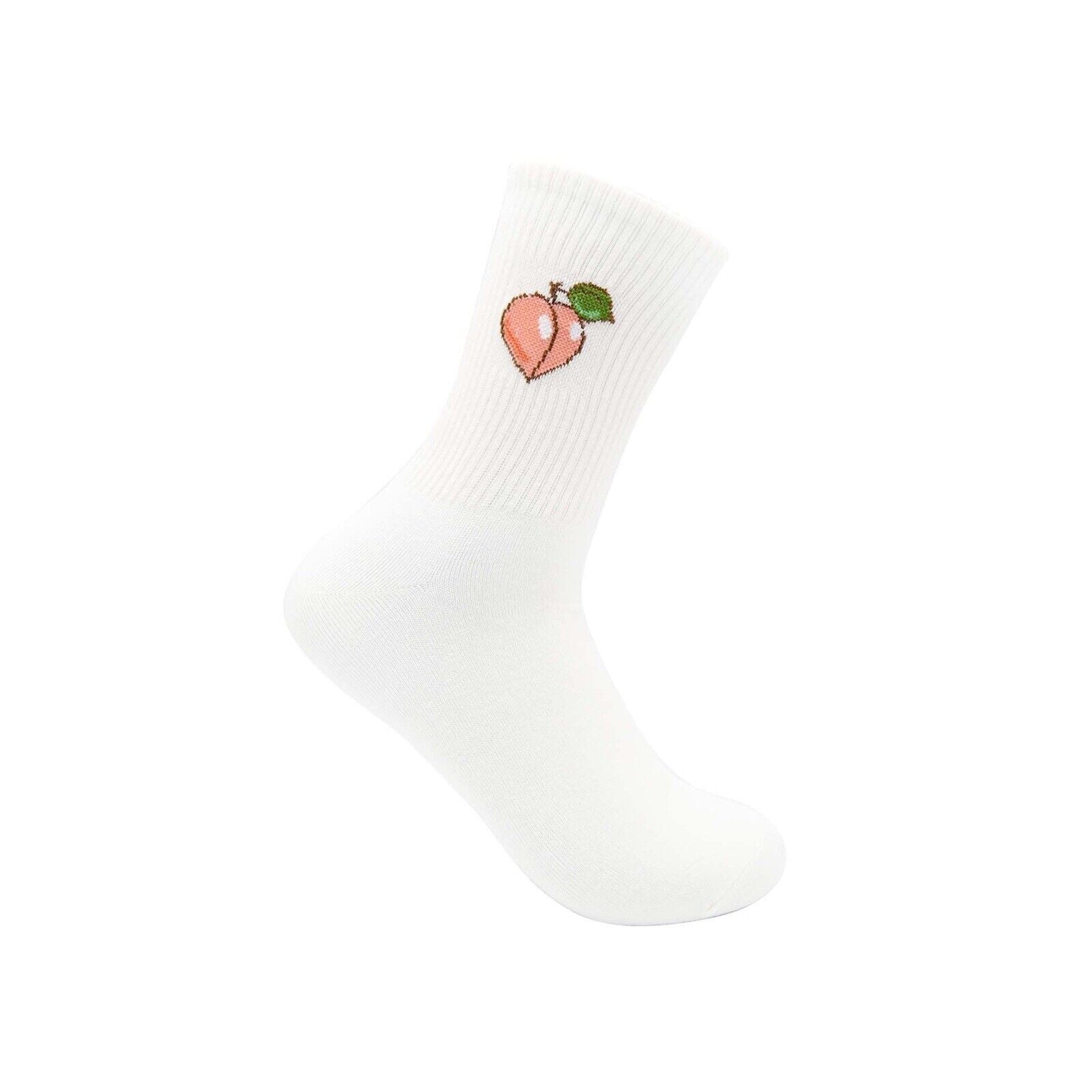 Add a touch of fruity fun to your sock collection with these peach-patterned ankle socks. Made with 100% cotton, these mid-calf crew socks are perfect for walking and suitable for all seasons. The sock length ensures that they stay up on your ankles and don't slip down.